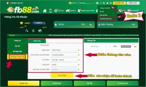 - Bước 2: Điền đầy đủ thông tin được hệ thống nhà cái yêu cầu. Những thông tin này có thể bao gồm số tiền bạn muốn nạp, phương thức nạp tiền (thẻ ngân hàng, ví điện tử, thẻ cào điện thoại), và các thông tin liên quan khác.